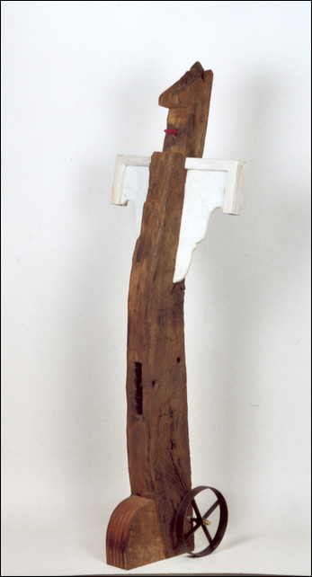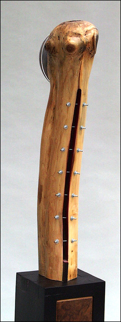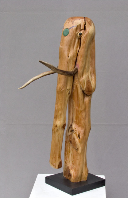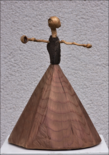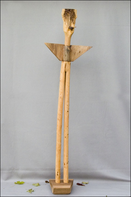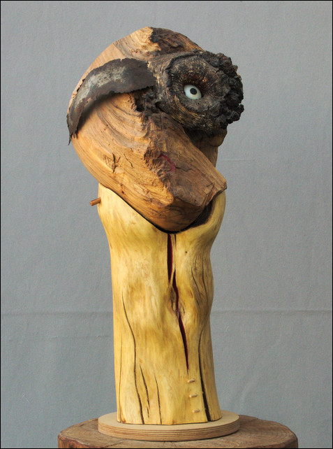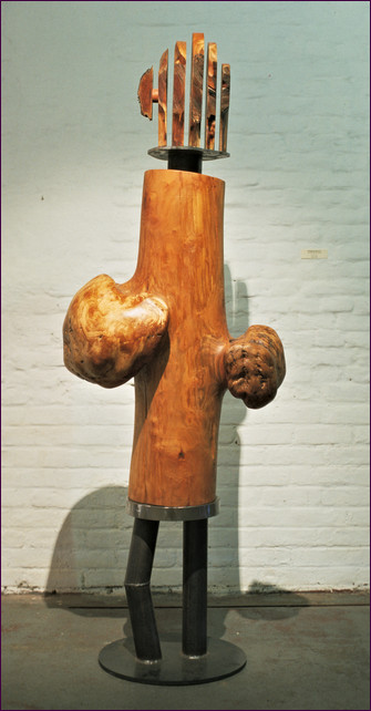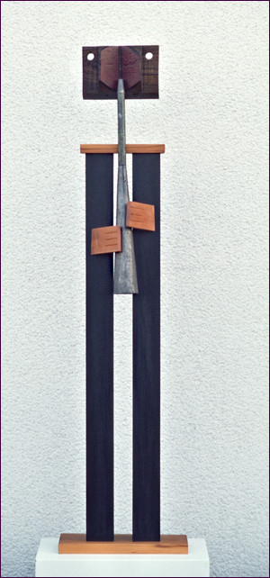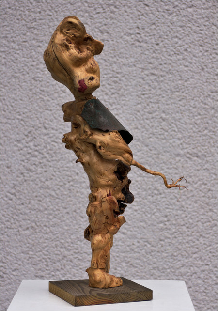 ( Kirschbaum, Eiche, Blech, Horn, 2014, 65x43x190cm. Skulptur Nr. 515)