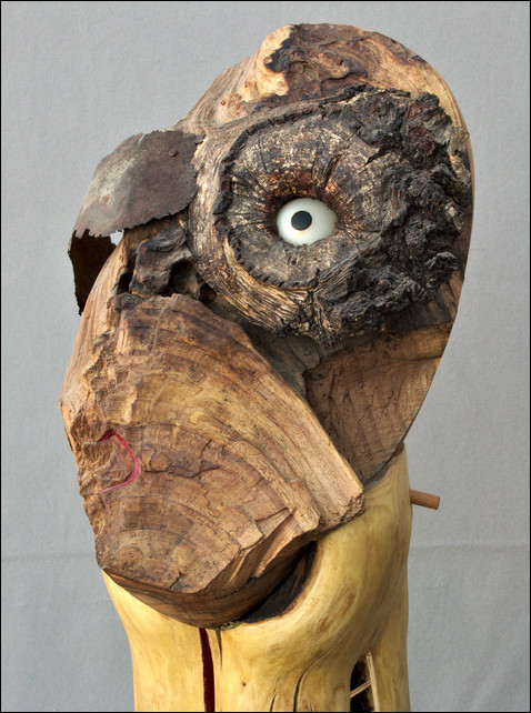 ( Kirschbaum, Eiche, Blech, Horn, 2014, 65x43x190cm. Skulptur Nr. 515, Detail)